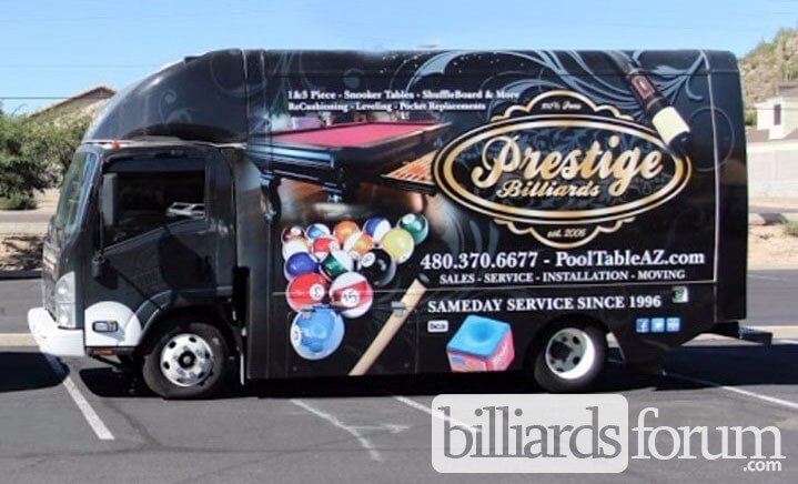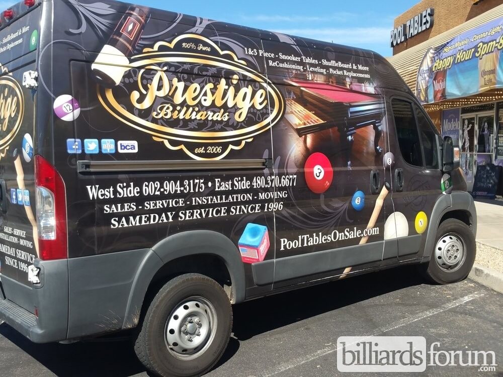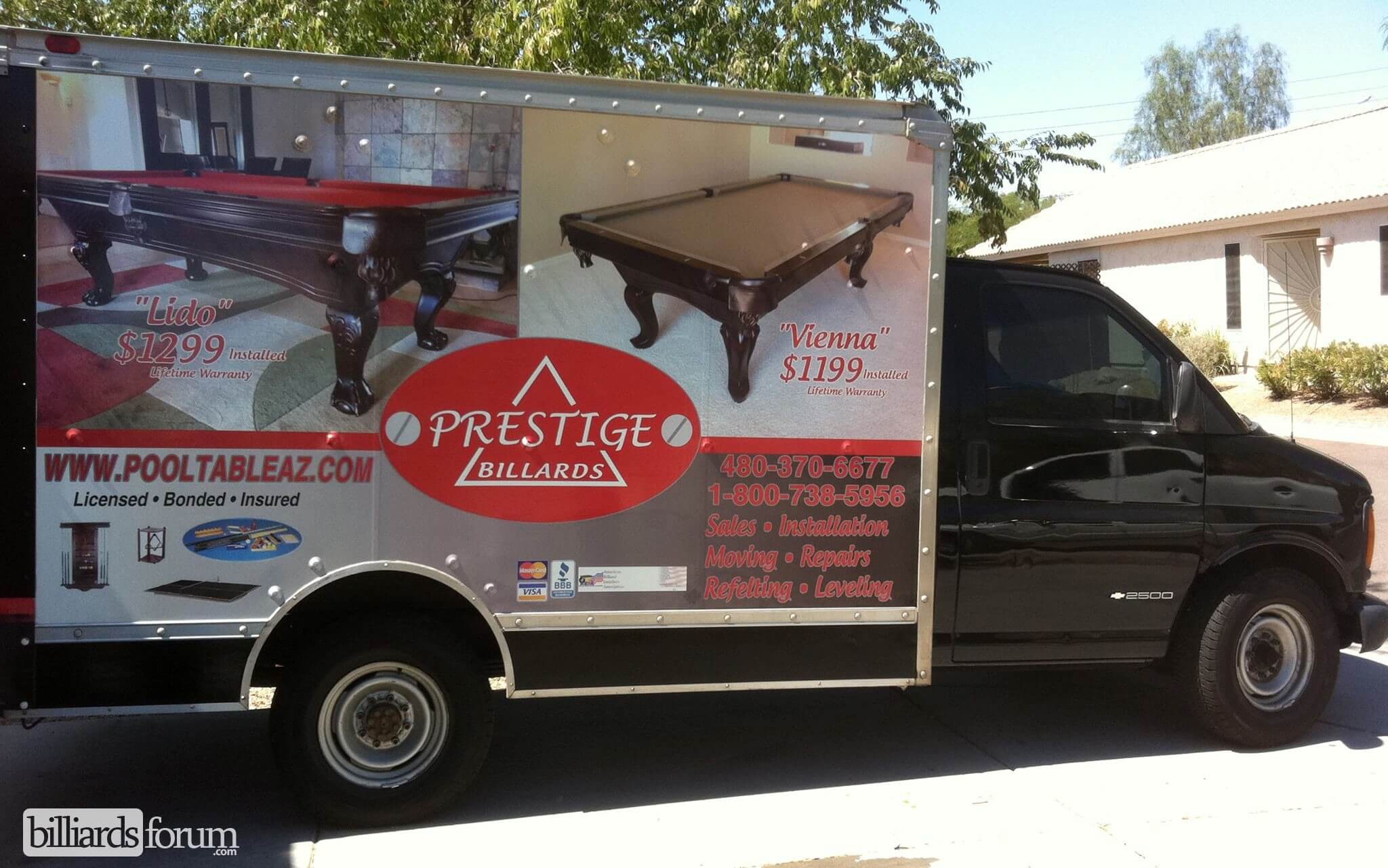 A pool table service truck from Prestige Billiards in Phoenix, AZ.