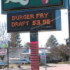 The front entrance sign of Q's Billiards & Eatery, a pool hall in Boise, Idaho.