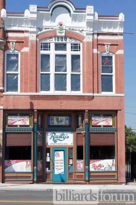 The store front of Rusty's Sports Bar & Grill, a Fort Scott, KS bar and pool room.