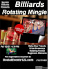This is a flyer from Society Billiards in New York, NY for Society Billiards Rotating Mingle. Make new friends, prize giveaways, rotating format, beginners welcome.