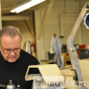 Van Hirtum Cues cue maker Leonard Van Hirtum behind his lathe in his Nashua, NH cue making shop.
