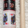 This Meucci BMC Casino 1 Hearts cue stick features red dice and a royal flush in the hearts card-suit in the butt sleeve. It is the first cue in the very popular Meucci BMC casino series.