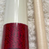 Photo of a BMC Casino 1 Hearts pool cue featuring a custom maroon with white-spec Irish linen wrap.