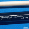 Photo of a BMC Casino 1 Hearts pool cue, signed and dated 2010-03-22 by Bob Meucci.
