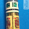 This BMC Casino 2 Hearts cue stick features turquoise green dice and has a royal flush in the hearts suit, all exquisitely laid out in the butt-sleeve. The shaft collar and joint collar features matching dice patterns.