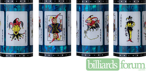 Bob Meucci Custom Casino-3 Cue - Joker Cue with joker cards - Budget Billiards exclusive. Limited edition with only 100 joker models to be sold, and Bob Meucci will sign every cue.