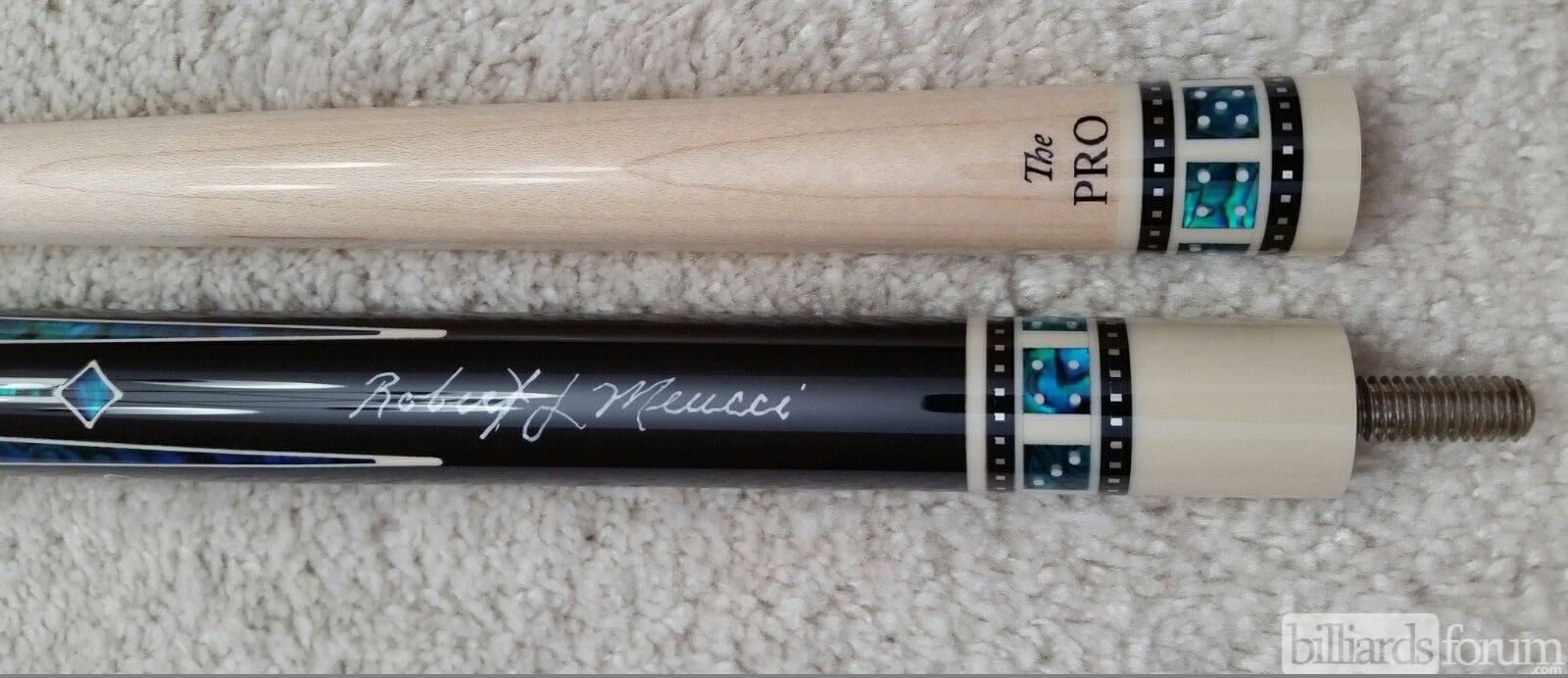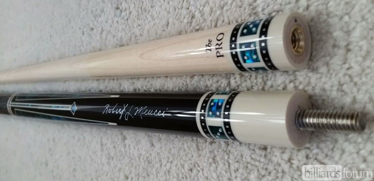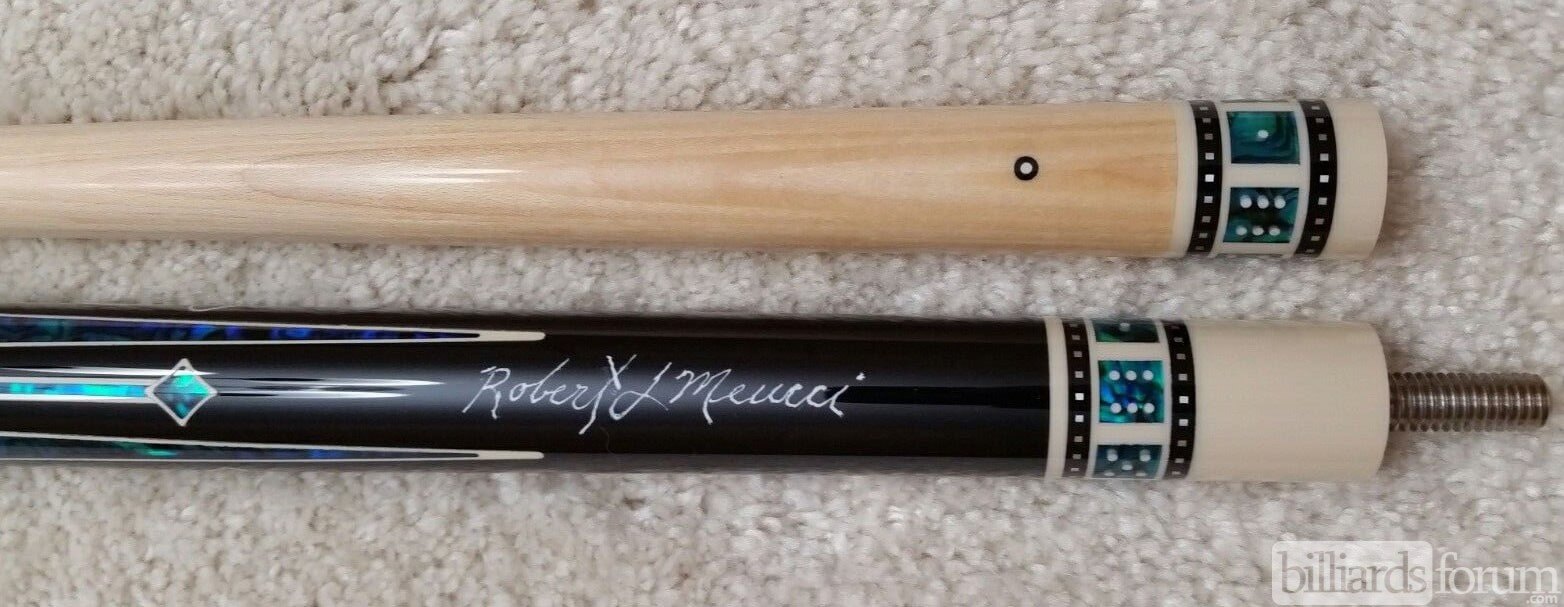 This cue was being retailed new on eBay. Listing title was: Meucci pool cue casino 3 power piston model with Meucci black dot shaft. MSRP is $1025.
