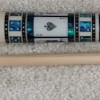 This Spades BMC Casino 3 cue stick has a royal flush in spades cards set in a blue paua shell card-sleeve.