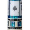 This BMC Casino #3 Spades pool cue features blue dice and points on a white/cream background. The BMC Casino 3 "Spades" model pool cue features an Ace, King, Queen, and Jack all in the suite of Spades in the butt sleeve.