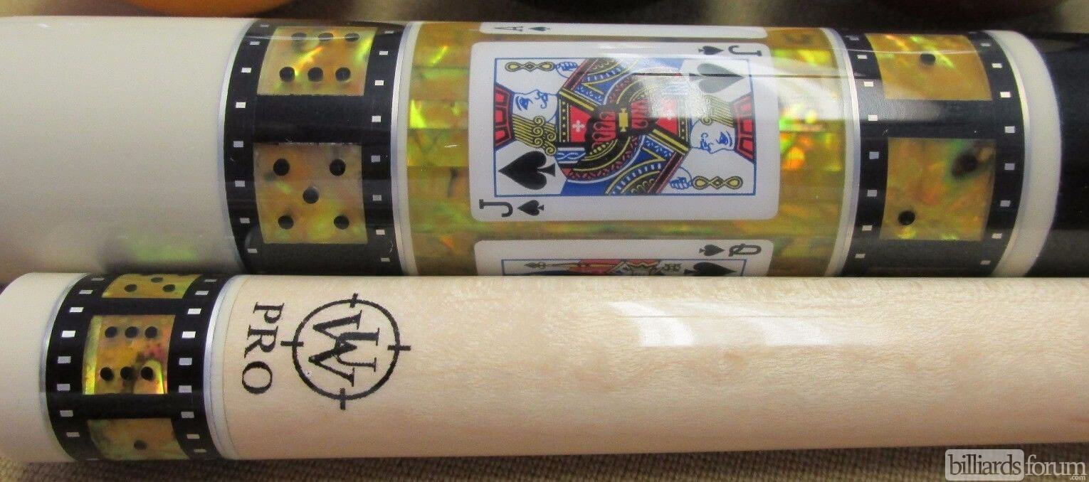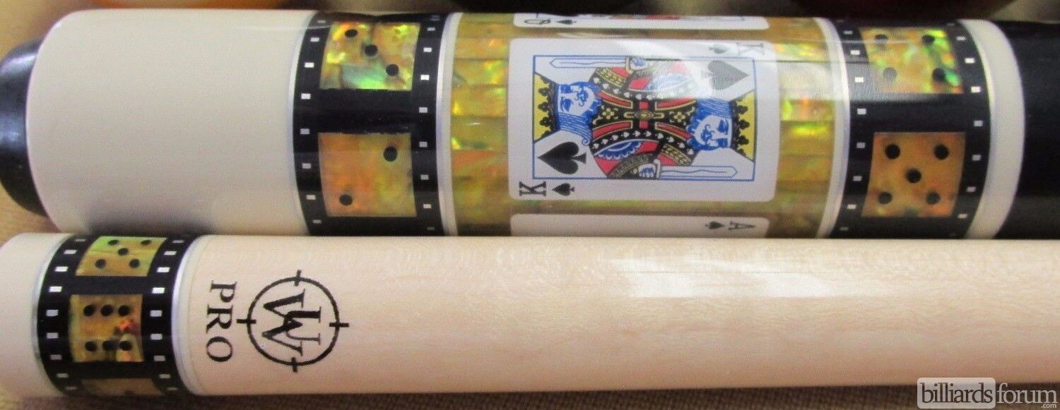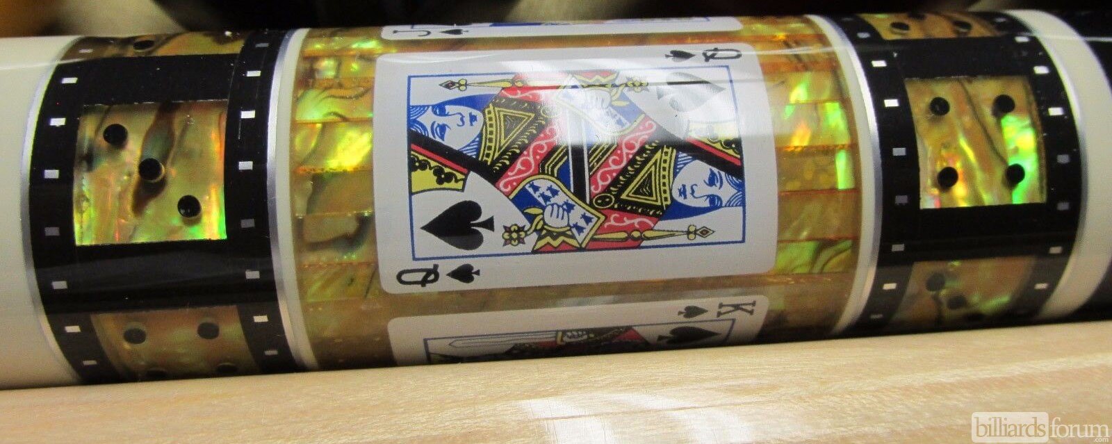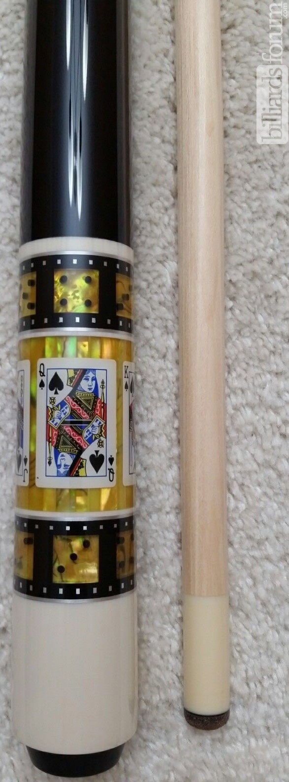 This is the butt-sleeve of the BMC Casino 8 cue with spades cards.