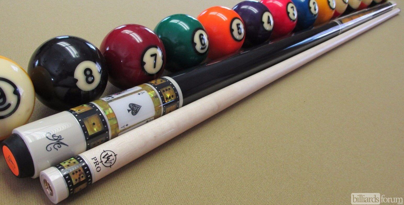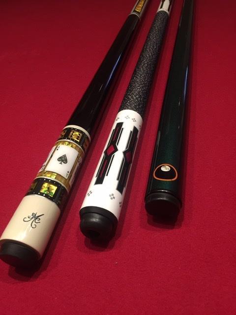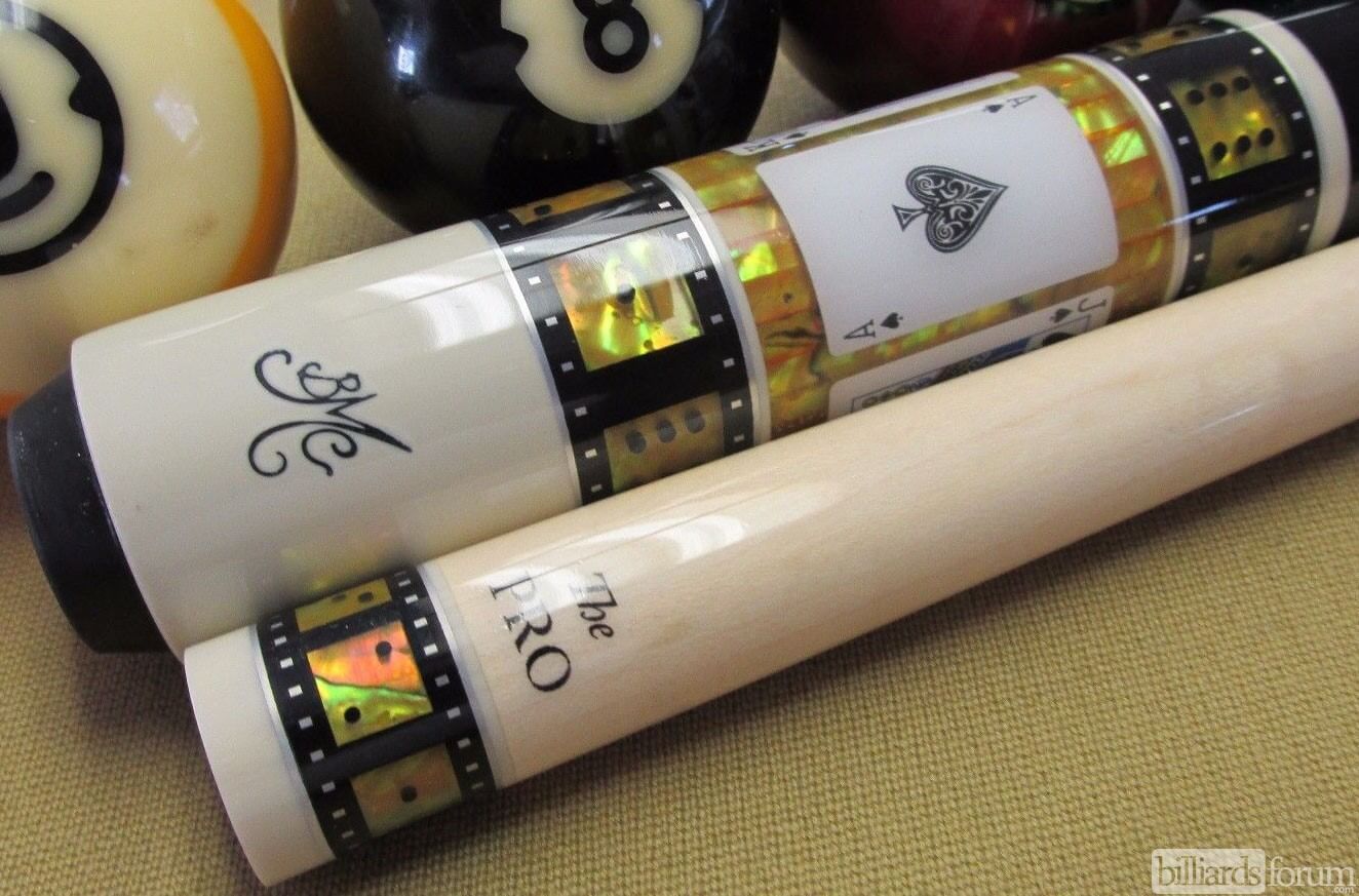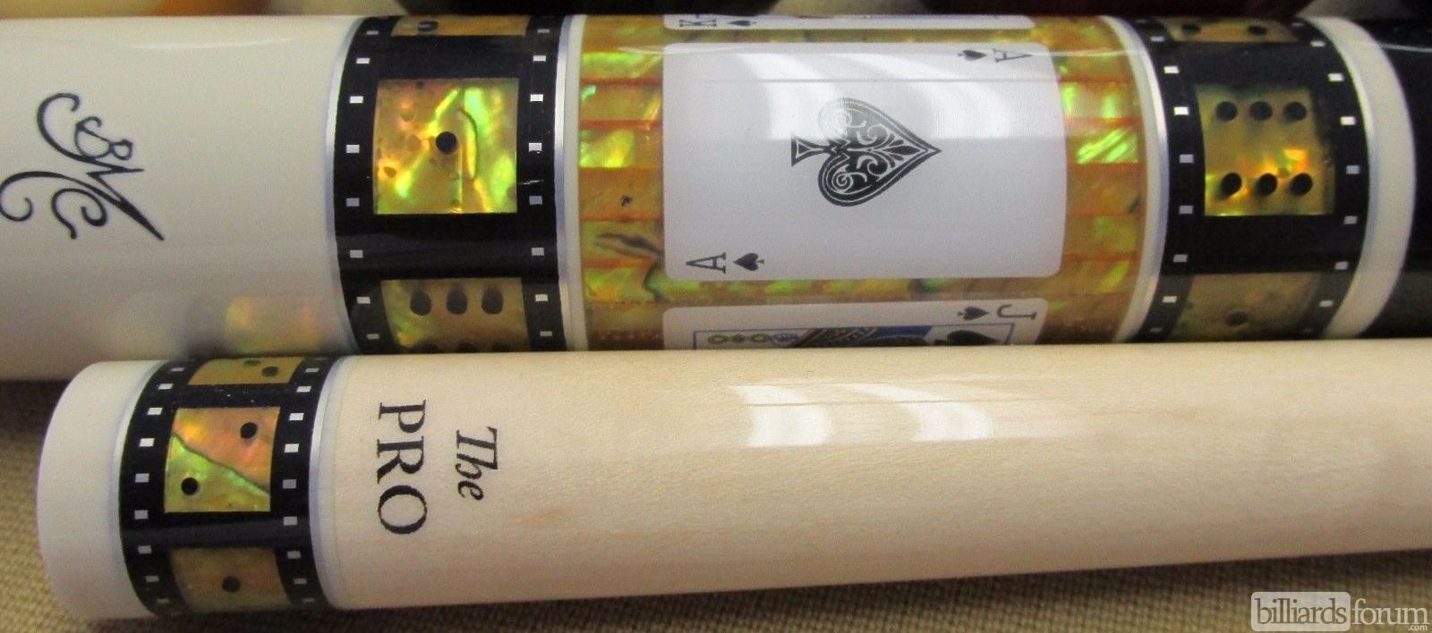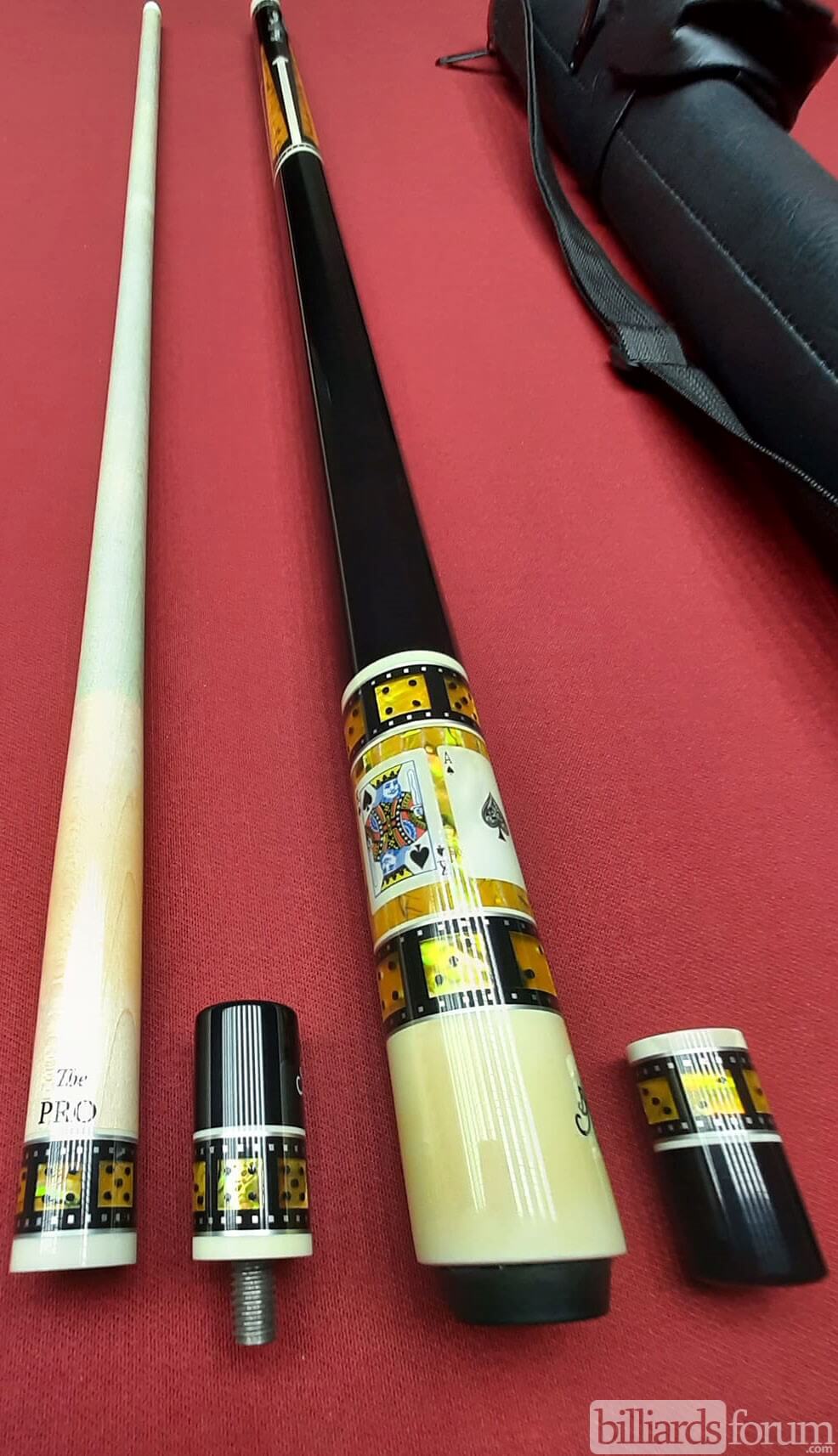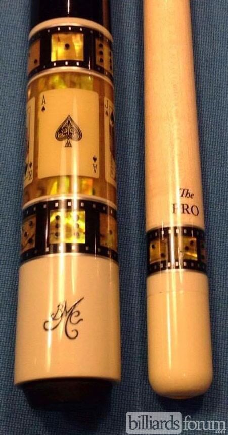 A BMC Casino 8 Spades Pool Cue that was for sale in the past in MI. From the seller: In stock ready to ship Meucci BMC Casino 8 pool cue with spades cards. Comes with a Meucci The Pro shaft and a free McDermott hard case.
