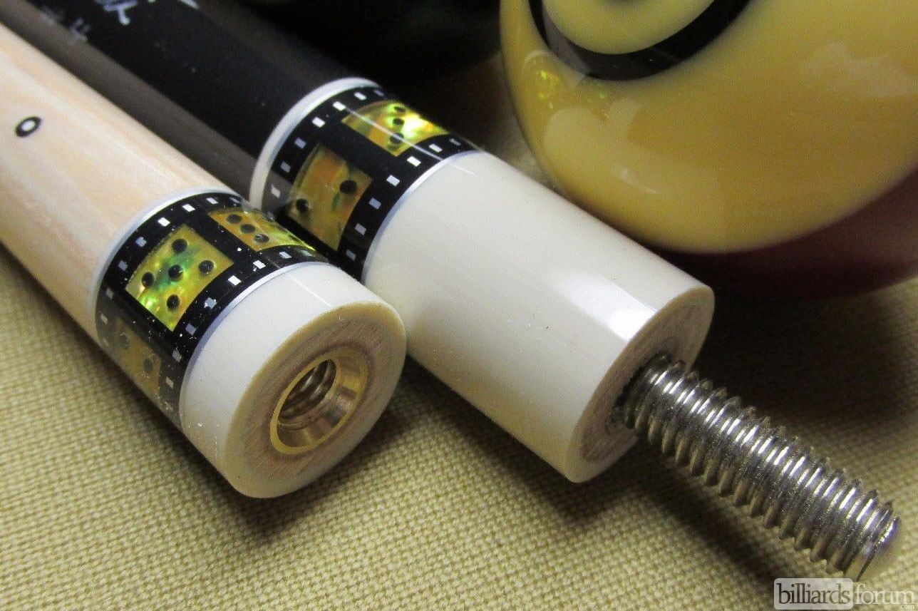 This BMC pool cue joint is from a black and yellow Casino 8 cue stick with spades cards.