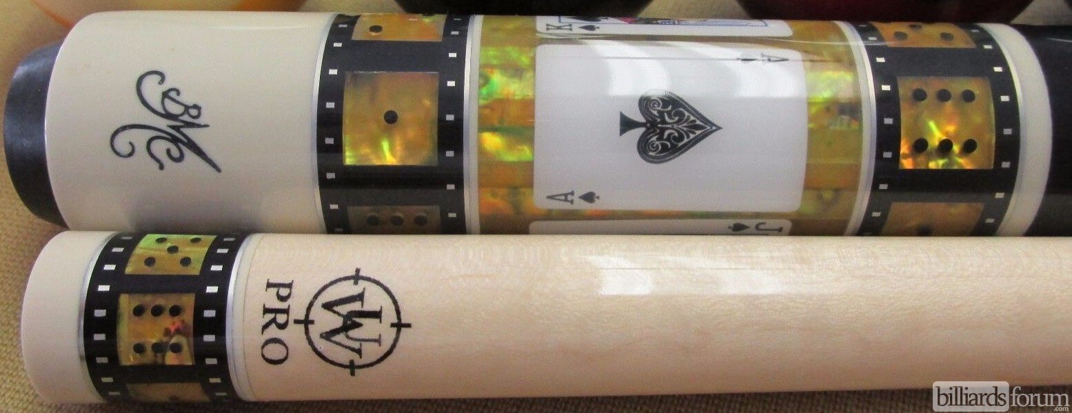 This forearm is from the BMC Casino 8 Spades pool cue. This particular BMC Casino 8 Spades model is dated 2015-09-17. Most Casino #8 cues aren't dated. Some are numbered. Most just have the "Robert J. Meucci" signature.