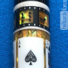 Photo of a BMC Casino 8 Spades pool cue with a spades royal flush in the butt-sleeve.