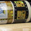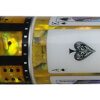 Photo of a BMC Casino 8 Spades pool cue. Shown here are the spades cards which are embedded over a yellow paua-shell background.