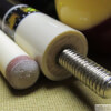 | Shaft Collar: | Shaft collar is white composite material with inlaid yellow paua-shell dice surrounded by silver checks. Threads have brass insert. |