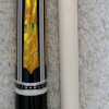 This photo shows the yellow paua-shell inlaid points in the forearm of the BMC Casino 8 Spades cue stick.