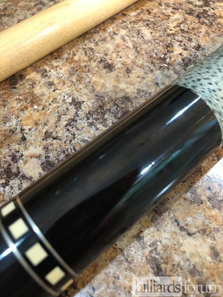 The cue is not perfect but is very presentable and obviously playable. It has a White and black speck exposed wrap.