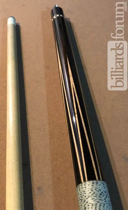 C. Lawson - I sent a PM of what Bob and I thought about the cue, but I need more info, or rather, to have it in hand to look at it. If it’s what he says it is, it's worth $700 to $1,000. If it’s what Bob and I think it is, it's worth $2,500 minimum. With that being said if it’s a power piston cue that’s 10 years old, and just customized, it’s like a $300 cue. I really would have to hold it to make sure and look close. I think that is made from gaboon ebony. I am pretty sure it’s a design I helped make for Kevin Cheng in the beginning when he first was sponsored by Meucci Cues. It's my ferrule material length, and has the same points and same rings, and appears to be made from gaboon ebony. It may have been one of the few Cheng didn’t take a liking to (thus, it being given to Teibel in exchange for work) but its a great cue.