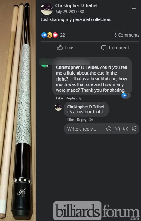 Meucci's web designer, mentioning the cue was a one-off made for him. This contradicts other information provided about the cue by others close to Meucci Cues.