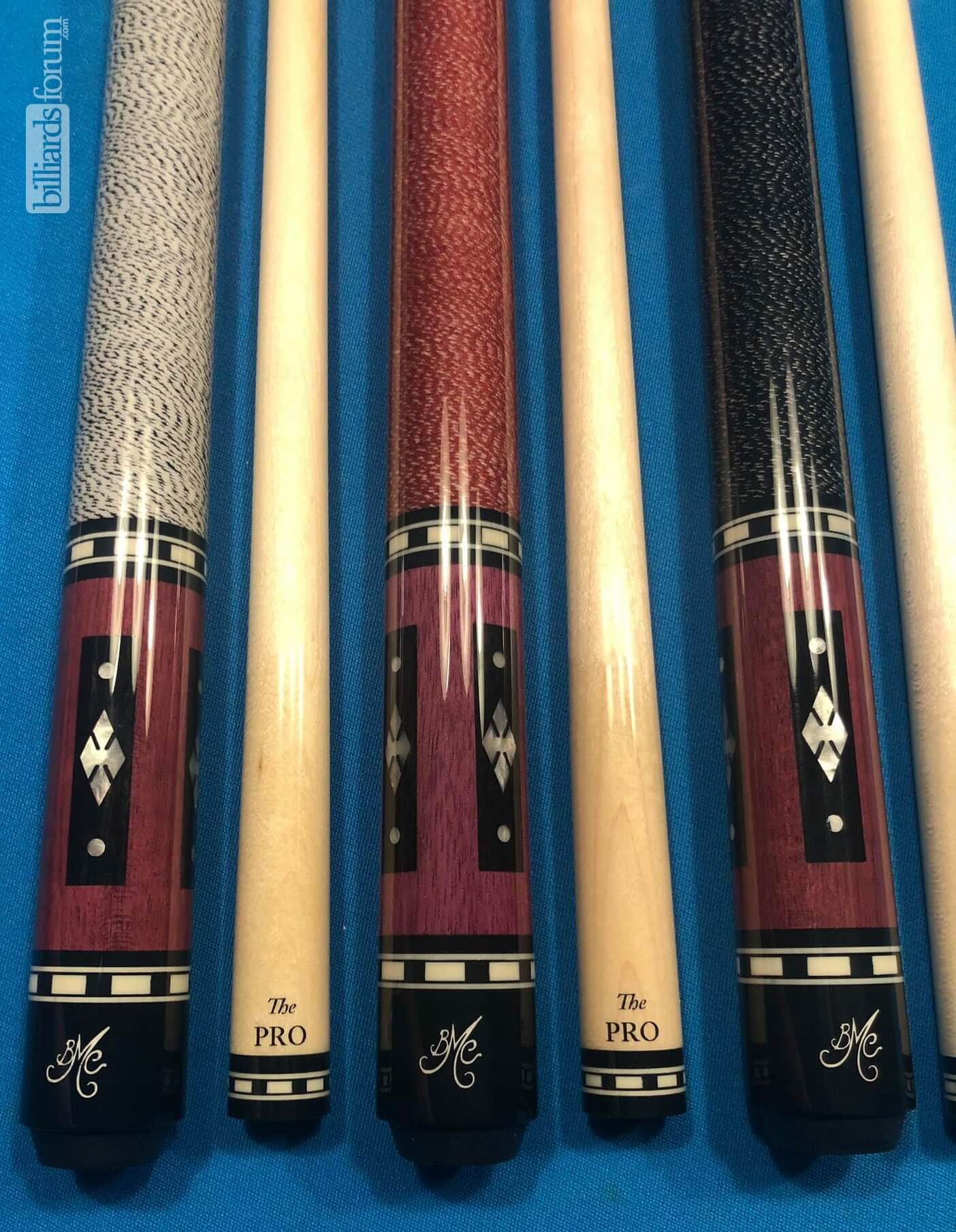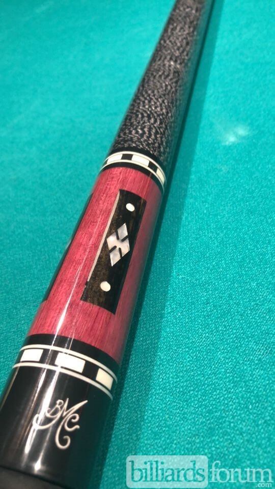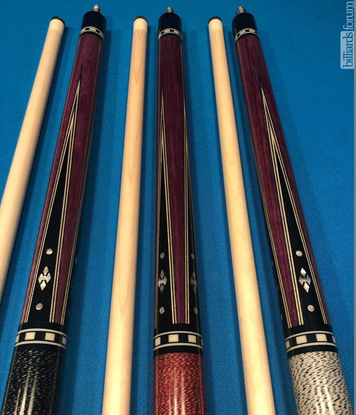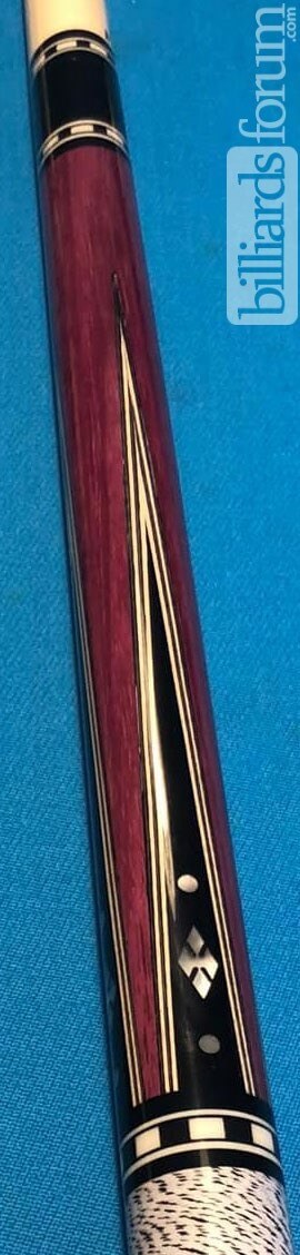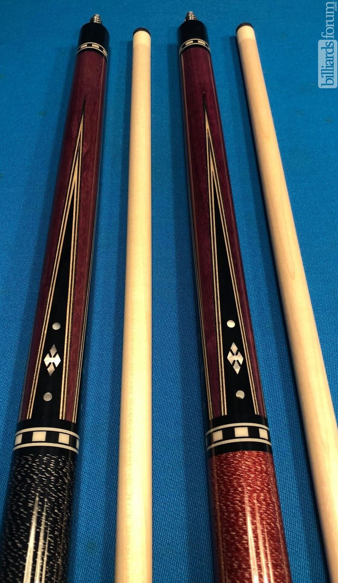 A 2020 Jonathan Stafford / Chris Binder Exclusive BMC cue model with serial #2 of 11. It was for sale in February 2022. From the seller: Up for sale is a Meucci Jonathan Stafford exclusive cue with serial number #2 (of 11 ever made). Yes, it is almost identical to the BMC pro series #7 cue, but this model is made with heartwood and it is very beautiful. The joint pin is a 3/8 X 10 thread pattern, and the cue weighs 18 oz (adjustable). The cue is in perfect condition, and I have only played a couple of racks with it. The selling price is $900, plus shipping.