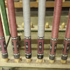 Construction photo of the 2020 Jonathan Stafford / Chris Binder Exclusive BMC cue, circa July 2020 - August 2020. Shown here, the lineup of 11 cues, waiting for inlays.