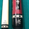 Up for sale is a Meucci Jonathan Stafford exclusive cue with serial number #2 (of 11 ever made). Yes, it is almost identical to the BMC pro series #7 cue, but this model is made with heartwood and it is very beautiful. The joint pin is a 3/8 X 10 thread pattern, and the cue weighs 18 oz (adjustable). The cue is in perfect condition, and I have only played a couple of racks with it. The selling price is $900, plus shipping.