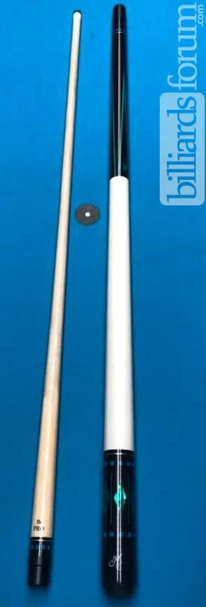 A Prototype BMC Black and Blue Diamond pool cue that is not signed, dated, or numbered. Contributed by Billiards Forum user skoons.
