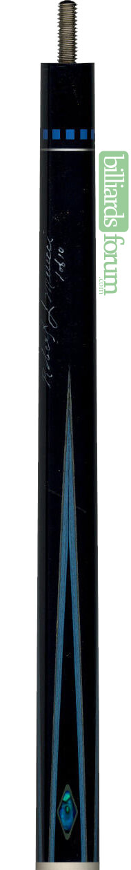 Photo of a BMC Black and Blue Diamond pool cue that was not signed by Bob Meucci.