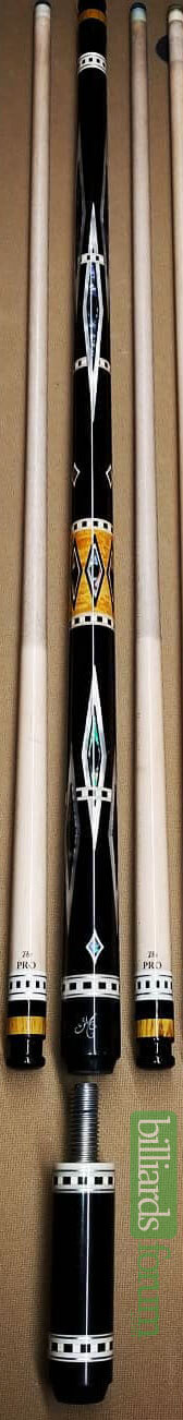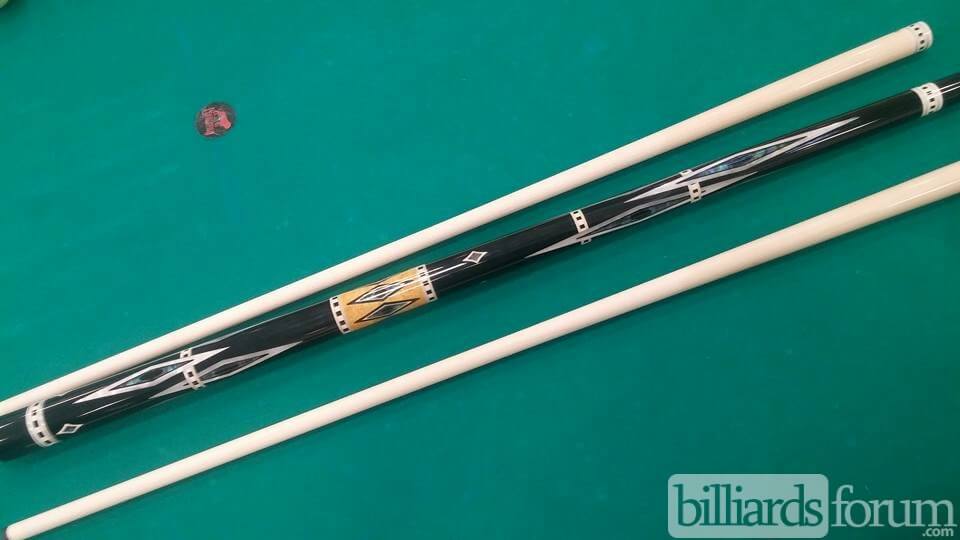 Photo of "the first #007" Ebony BMC Diamond pool cue with two shafts.