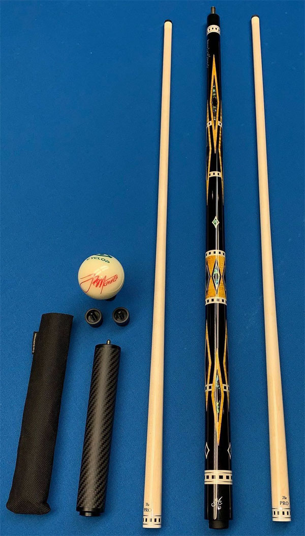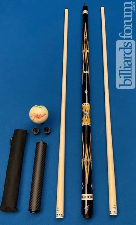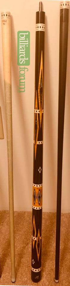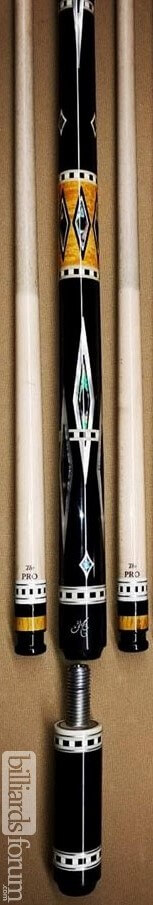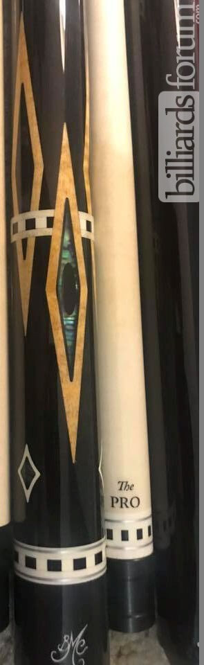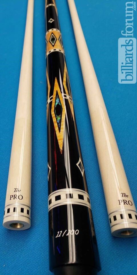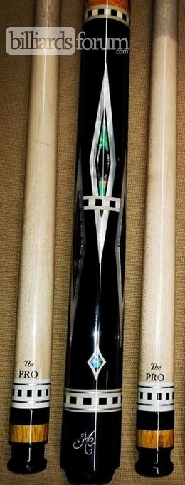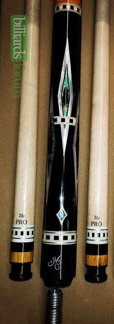 The first instance of the #9 ebony BMC Diamond cue. This one was for sale by The Pool Cue Shop in September 2020. It has two matching "The PRO" shafts.