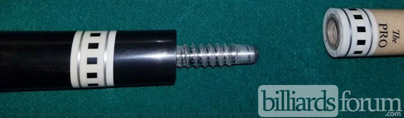 | Shaft: | Comes standard with TWO Meucci The PRO shafts. Other shafts available upon request. For example, Meucci Cues and Budget cues websites both suggest a specially built THE PRO extreme low deflection shaft with a G10 3/8x10 pin and a 1/2 Inch Ferrule. |