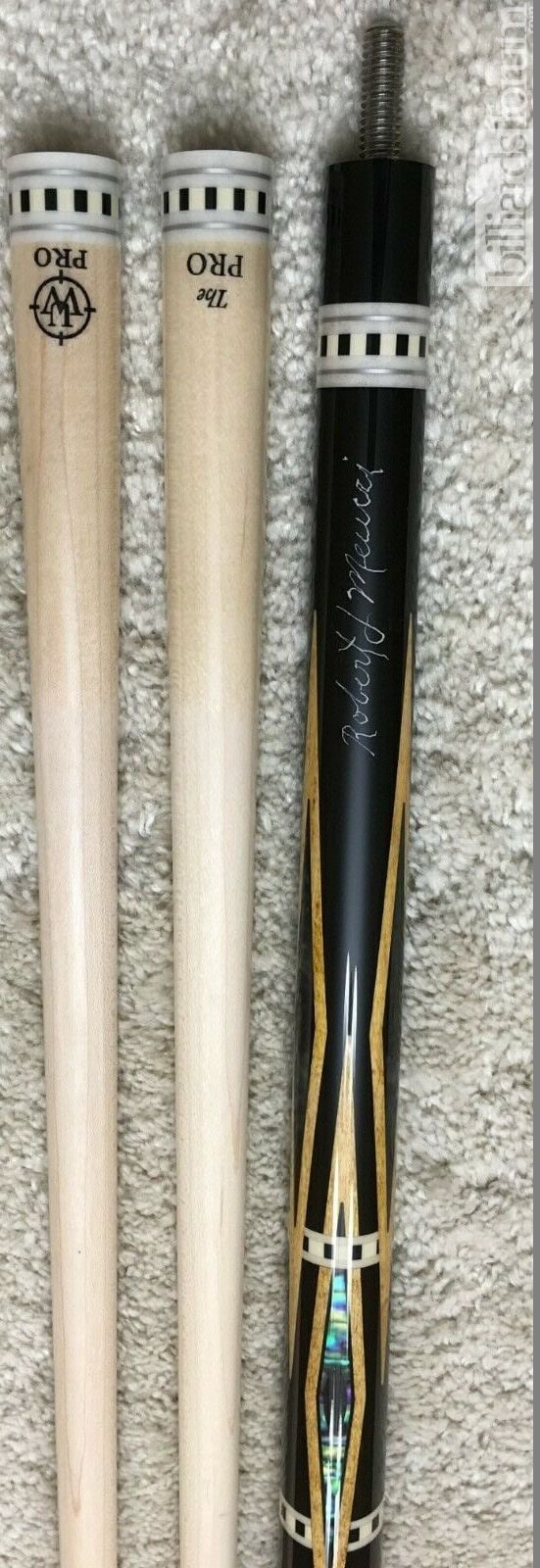 Brand new custom ebony BMC Meucci Diamond cue with two matching shafts. One "Ultimate Weapon" shaft and one "The PRO" shaft. Photo Shows 2 Pro Shafts However This cue comes with (1) The Pro Shaft And (1) Ultimate Weapon Pro Shaft. The cue is hand signed then numbered by Bob Meucci. This one is #6 Of Only 100 custom collectible cues of this model to be made.