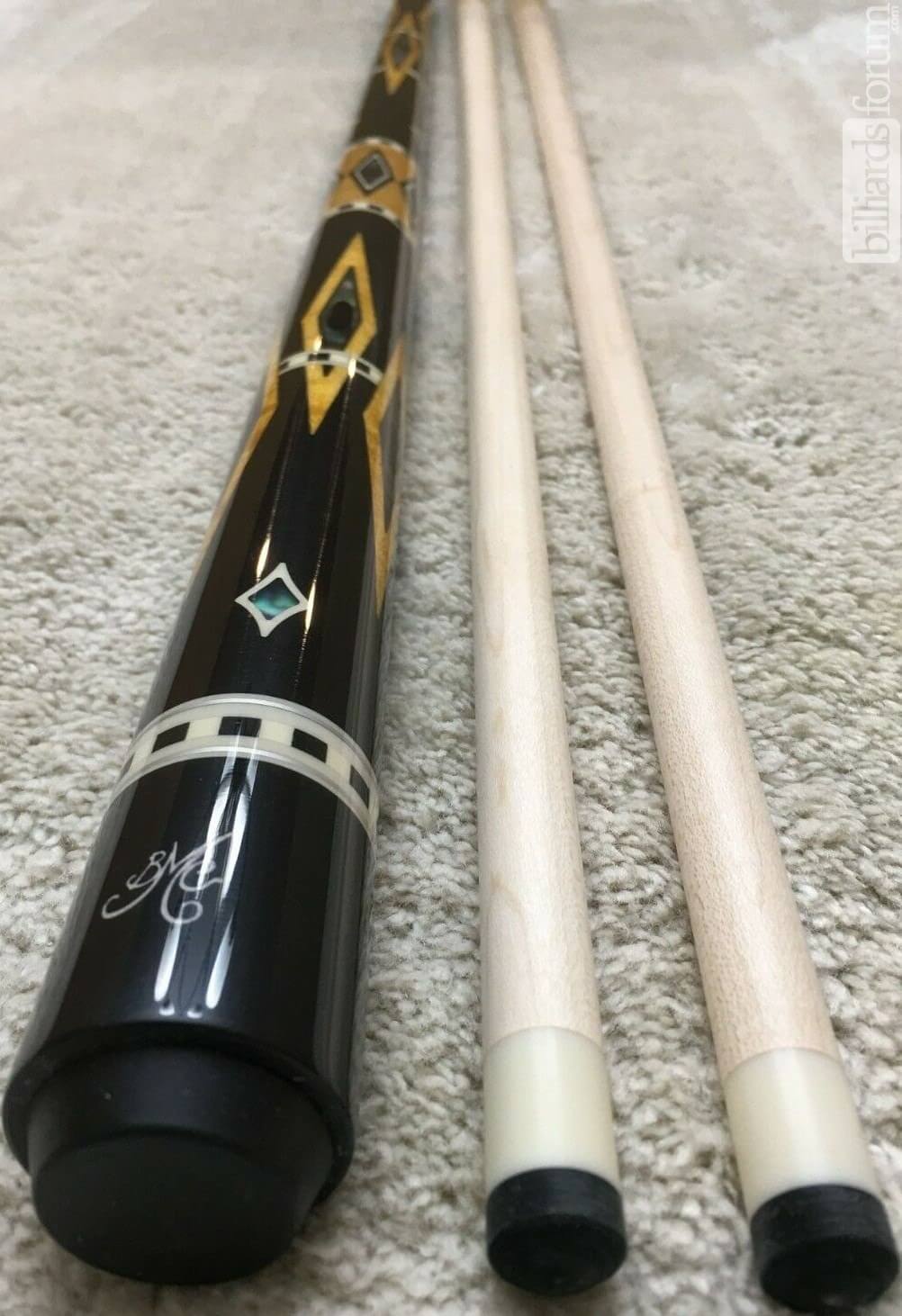 An Ebony BMC Diamond cue numbered "3 of 50". This cue was originally owned by Jayson Shaw until he sold it Feb 2018. From the 2nd owner: This is the Ebony Diamond I bought from Jayson Shaw. Dennis has the matching cue, only difference is this has a radial pin instead of the standard 3/8 x 10 Meucci offers for this cue.