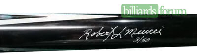 The cue is hand signed then numbered by Bob Meucci. There are expected to be only 100 custom collectible cues of this model to be made.