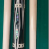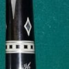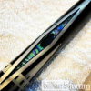 | Forearm: | The forearm is set in beautiful dark ebony wood and features several large diamond inlays and black fiber rings. Birdseye maple is used on the exterior of all diamonds. The earliest cues used mother of pearl for this, but that was swapped out for birdseye maple after Meucci noticed the MOP didn't hold up well. The ovals in the middle of the diamonds are made from authentic Abalone shell. In the case of the 6 trim diamonds, the Abalone used is a very rare "Heart of Abalone". Most of the BMC Diamond cues are signed on the forearm. Some are also dated. |