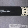 The 7 of 100 Ebony BMC Diamond cue from Bob Meucci Customs. It was being offered for sale in November 2018. From the seller: Meucci Diamond Cue in Ebony #7 of 100. Asking for $2,500 OBO. Brand new 10/10 with one The Pro shaft 12.5mm