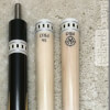 Photo of a BMC Ebony Diamond cue forearm and two matching shafts.