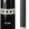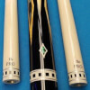 The ebony Diamond cue has eight eight sets of imitation ivory trim rings that are each inlaid with 12 black squares. That is a total of 96 inlaid squares. Take note of the amazing over-and-under design apparent on the top and bottom halves of the butt.