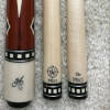 This cue comes with two matching shafts. A Meucci "The Pro" shaft at 12.5 mm, and an "Ultimate Weapon" shaft at 11.5 mm. The forearm is hand signed by Bob Meucci. This Is #1 Of Only 100 Custom Cues That Will Be Built.