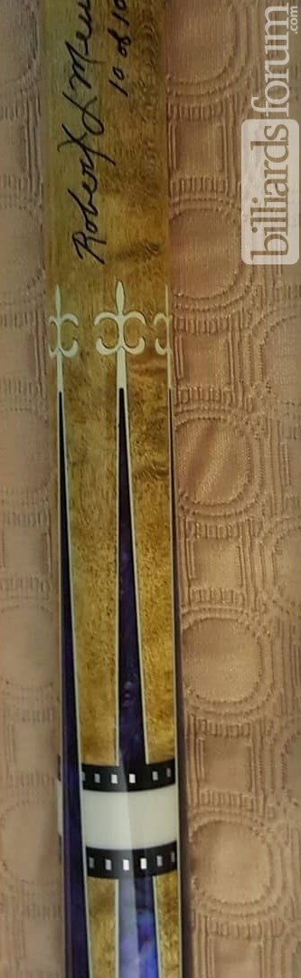 A BMC Exclusive A&W Purple Knight cue with serial #9 of 10.