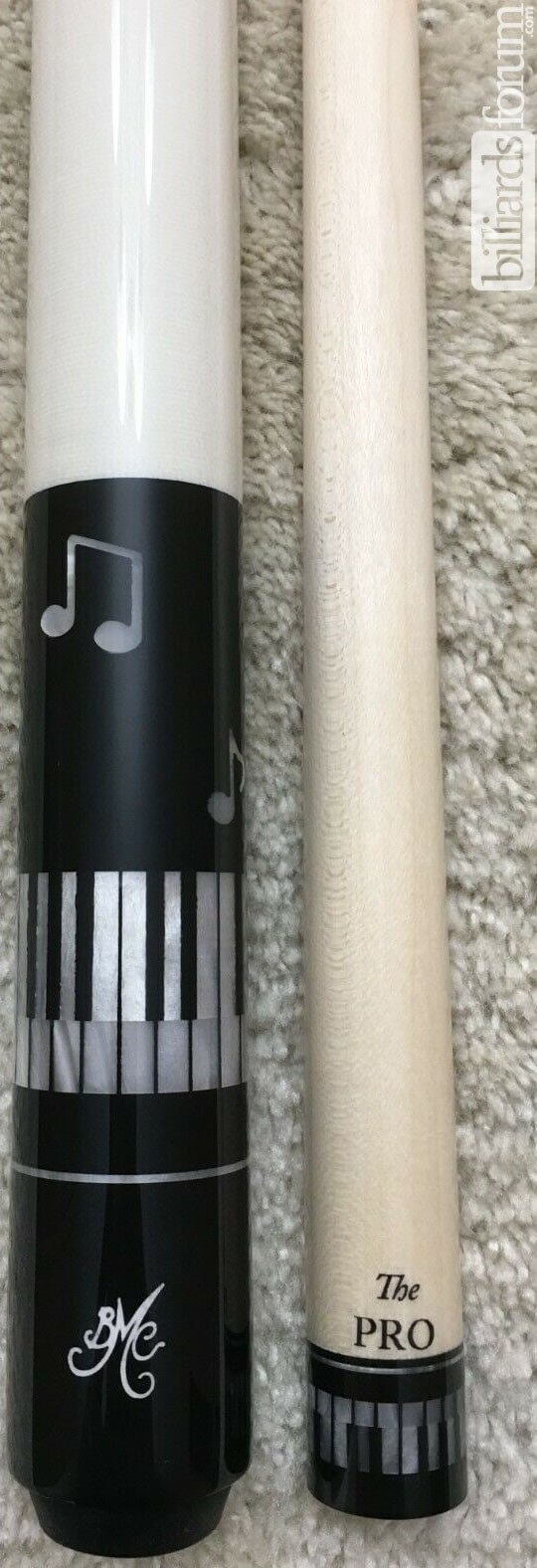 The new BMC music cue design features more black and pearl in it's design than does it's predecessors. As such, the new BMC piano cue pairs really well, aesthetically, with the Meucci Carbon PRO shaft.