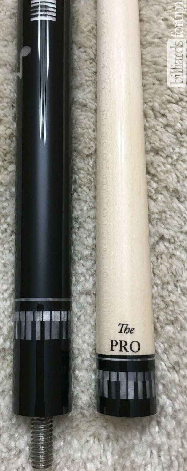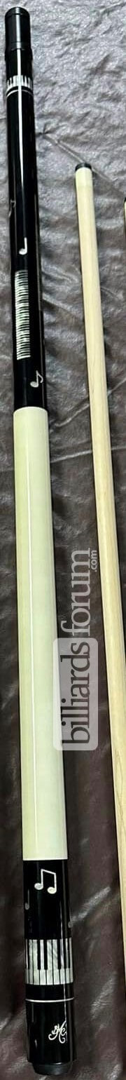 A new Meucci BMC Pearl Piano cue with a Meucci "The Pro" shaft that was for sale in November of 2020. From the seller: New Meucci "Pearl Piano Cue" with a Meucci "The PRO" shaft. It has a flat-faced joint with a 5/16x18 pin. The forearm and butt sleeve are black with pearl inlays. The cue has Meucci's five-proof urethane coating, including the wrap area, and a classic push-in rubber bumper. The cues comes standard set to 19 oz. I can adjust the weight to your liking anywhere between 18 oz and 21 oz prior to shipment.
