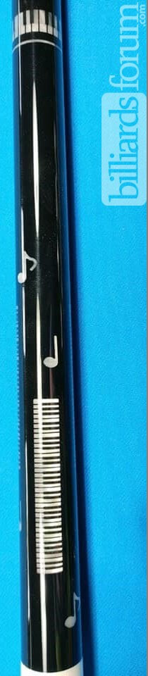 | Butt Sleeve: | Black buttsleeve with a white pearl inlay design wrapped around the base of the butt cap with more musical notes that match the forearm. |