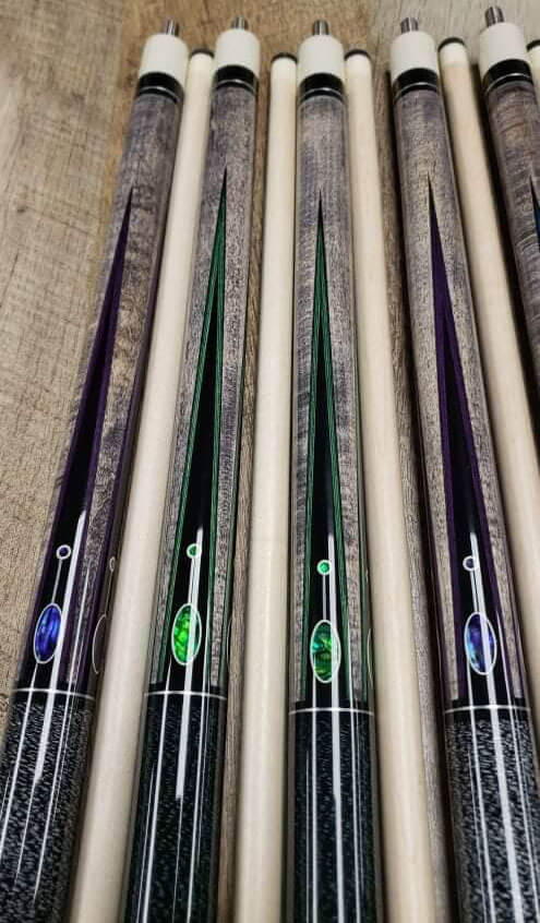 A photo of a few of the new SWBB-2B pool cue colorways, released in 2021. See above for all of the new colors.