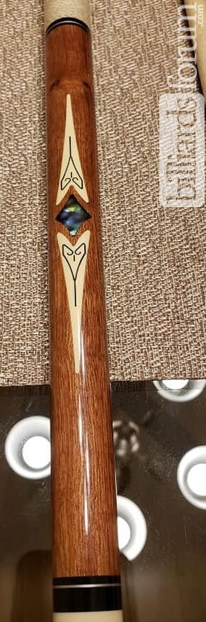 Photo of a BMC SWBB 3 pool cue. Designed by Bob Meucci for Skyler Woodward.