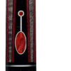 Buttsleeve of the BMC SWBB-2B Red cue. This pool cue model features a grey-stained keyhole shape with an oval red shell inlay, a white butt cap.