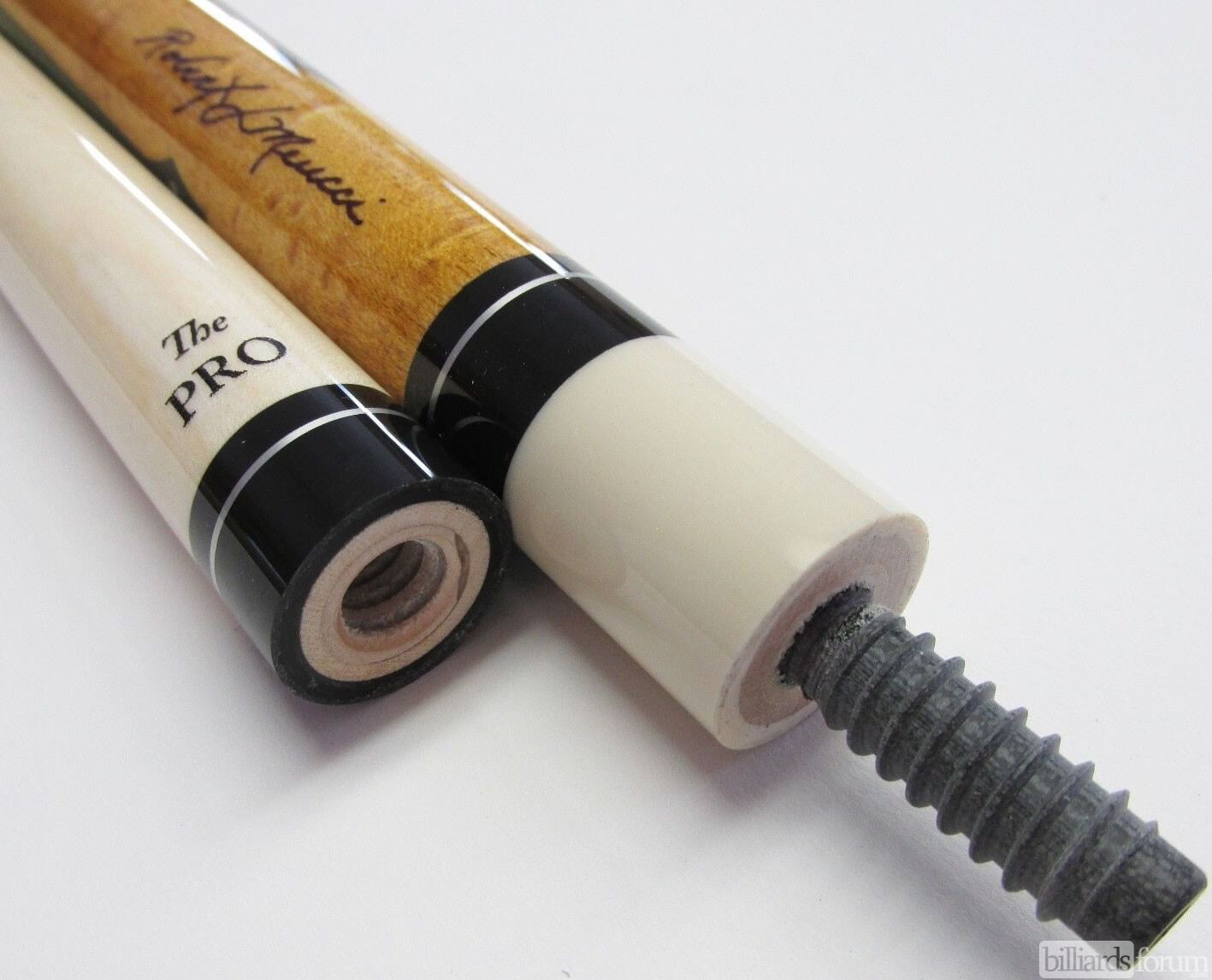 | Shaft: | Extra low deflection Meucci Pro Series high performance hard rock maple with perfect heavier taper for pro & semi-pro pool players that plays perfectly in all positions. |