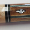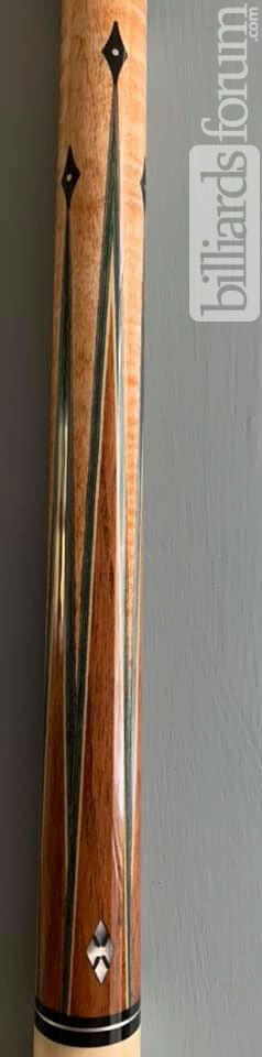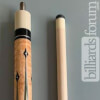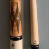 This is a sweet 6-point rosewood and golden maple beauty. Bob says this is the only 6 point cue he has ever produced.