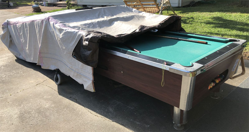 My first tarp was big enough to wrap the pool table like a Christmas gift, but then it has to go up-and-over far enough to make sure water doesn't collect above the pool table.